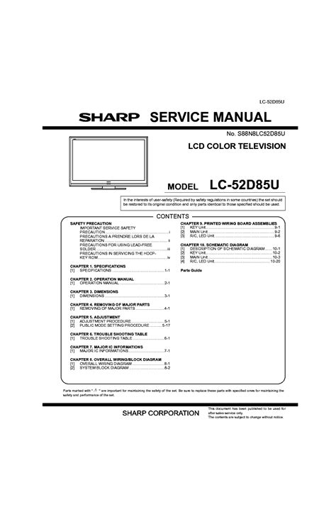 Read sharp aquos lc52d85u service manual Epub