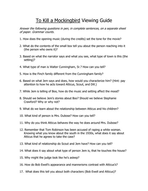 Read To Kill A Mockingbird Viewing Guide Answers Reader